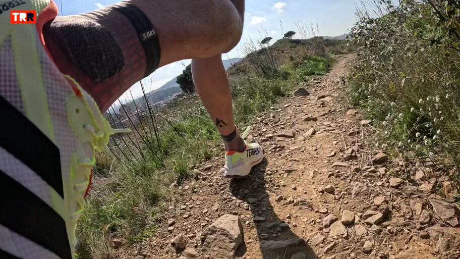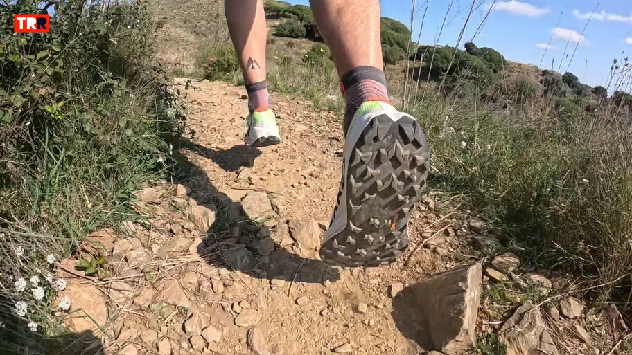 Además, el incremento de estructura en el conjunto de la zapatilla —especialmente en el talón y la base— permite un mayor control en terrenos irregulares y pedregosos. Esta mejora se percibe claramente en zonas exigentes como Montserrat, donde el comportamiento de las Agravic TT resulta notablemente más estable y predecible.