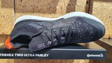 La suela de estas Adidas Terrex Two Ultra Parley vuelve a ser de goma Continental, esta vez son unos tacos no muy prominentes que creemos irán mejor sobre terrenos compactos. El upper está construido en Knit, un material de gran comodidad pero que no acaba de sujetar el pie. Para solucionar esto, Adidas ha reforzado el Knit de las Adidas Terrex Two Ultra Parley en la zona del medio pie, donde este tejido es mucho más espeso.