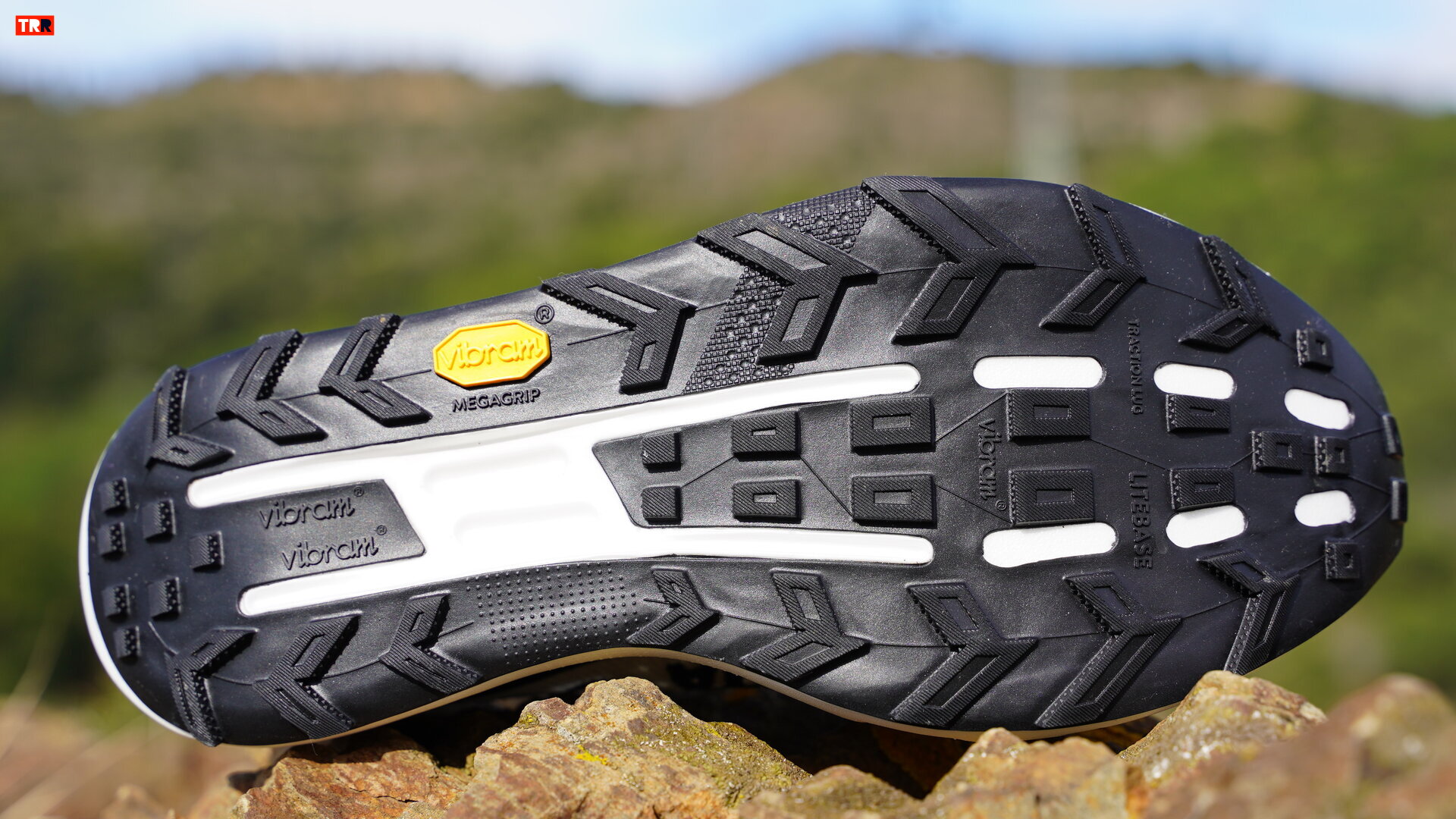 La suela es uno de los pocos elementos que nos recuerda que estamos en el mundo del trail: Vibram Megagrip, tecnología Litebase para aligerar el conjunto y Traction Lug para mejorar el agarre. El taco de 3,5 mm y el diseño multidireccional hacen que funcione muy bien en terreno compacto y bien pisado, aunque no está pensada para condiciones muy técnicas o blandas.