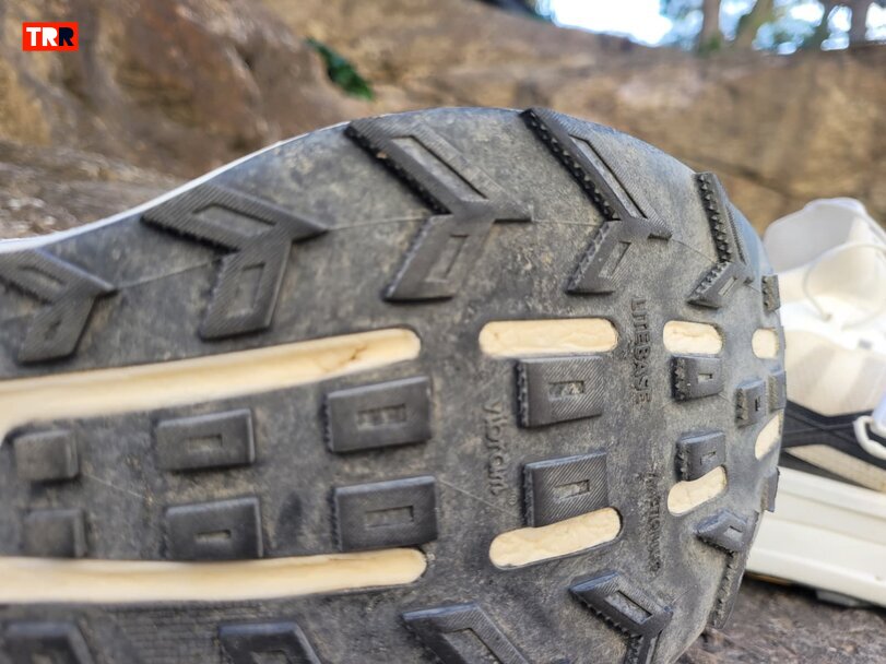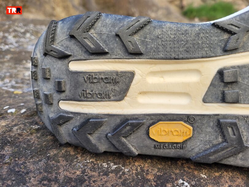La suela de estas zapatillas me ha sorprendido muy positivamente. Quizás pueda parecer que exagero, pues hablamos de una suela de uno de los mejores compuestos, Vibram Megagrip, pero no me esperaba que una zapatilla tan asfaltera tuviera tan buen agarre en todos los terrenos.