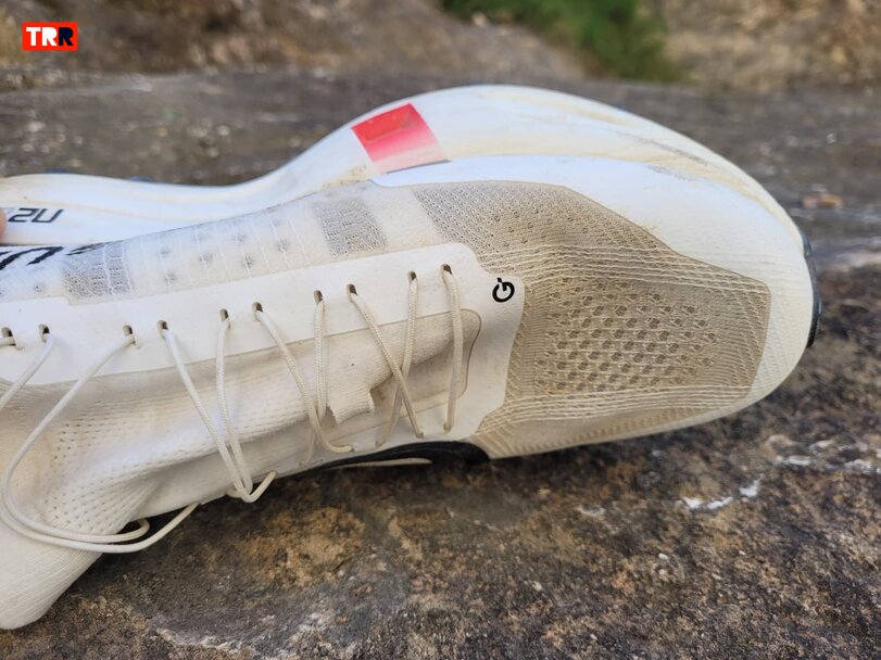 En conjunto, el upper está pensado para reducir el peso al máximo con la mejor transpiración posible. Muy poca protección, poquísima estructura.