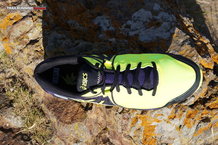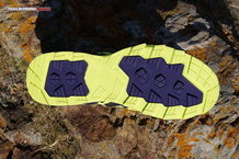 y una suela y medio suela con perfiles más bien bajos, que ofrece gran agarre pero poca durabilidad.