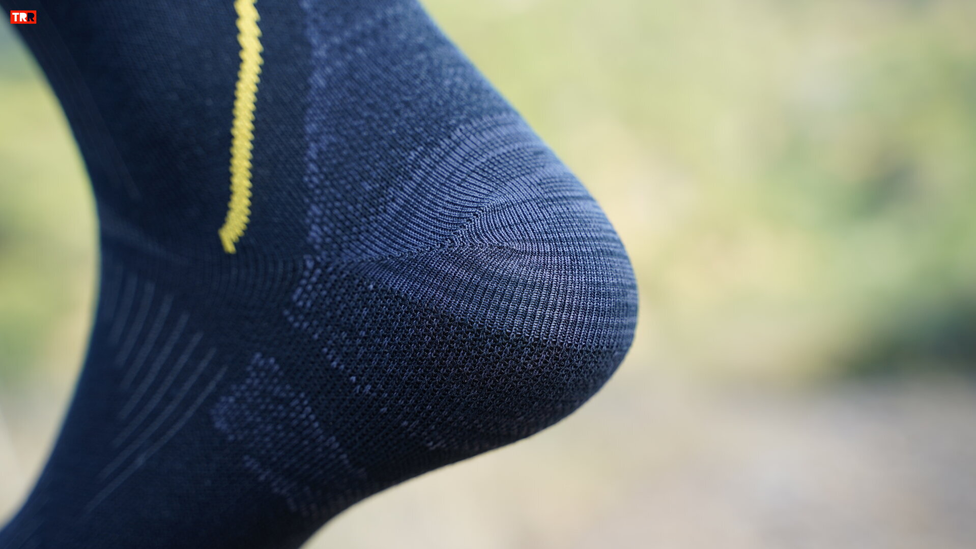 La verdad es que el fit del calcetín es excepcional. Tendremos que dedicar cierto tiempo para colocárnoslos, aún sin llevarnos mucha dificultad en ello. El objetivo es no dejarnos ningún pliegue del tejido que nos pueda luego, molestar. Una vez bien colocado, el calcetín no se mueve por más kilómetros que corras.