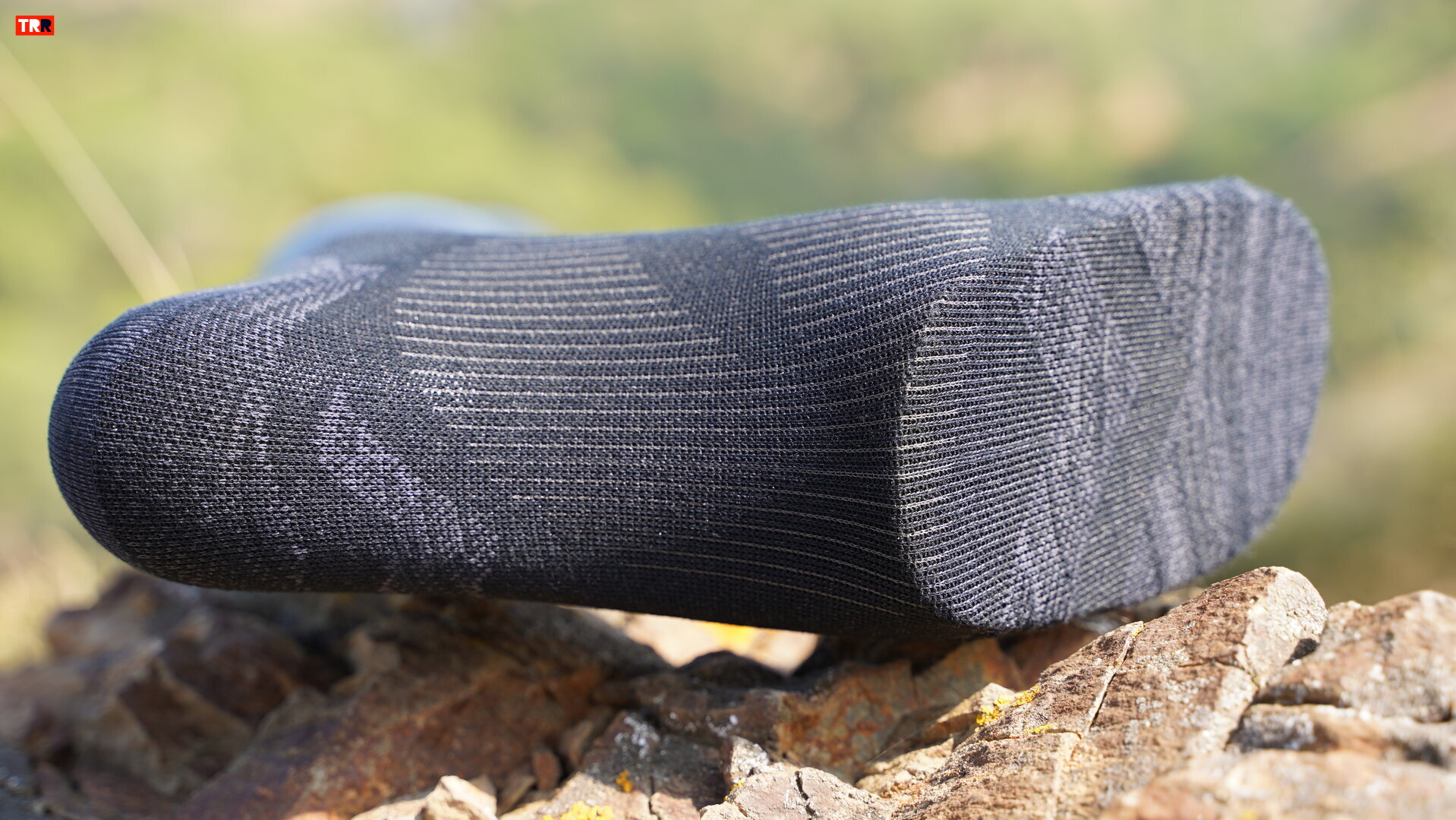 Los calcetín CoolNet™ se han fabricado como una prenda fina, pensada para su uso, teniendo muy en cuenta la transpirabilidad como máxima, sin que sean unos calcetines para uso intensivo en la montaña. Según la casa, mejoran nuestro rendimiento con la comodidad refrescante de Smart Mint, tecnología de enfriamiento ingeniosa que utiliza menta natural para mantener la frescura del pie. Y un control de olor de HeiQ®. Ambos nos mantiene frescos y ligeros ya que las fibras con las que está confeccionado el calcetín absorbe la humedad y alejan el sudor al exterior, mientras que las zonas de malla transpirable garantizan un flujo de aire máximo. En días de calor, se han comportado muy bien, sin que la sudoración en el pie se note, incluso con zapatillas más cerradas, ya que hemos realizado el test con diferente calzado para ver su respuesta. En días más fríos o con lluvia, y por lo tanto más humedad, hemos comprobado como el tejido expulsa el sudor al exterior, pudiendo observar pequeñas gotitas de sudoración en el exterior del tejido. Realmente un tejido excepcional. Además de poco olor en diferentes usos sin pasar por la lavadora. Hasta tres veces los hemos utilizado sin lavar.