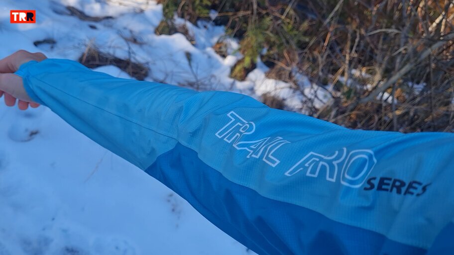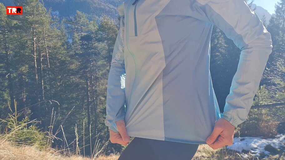 En cuanto a las mangas encontramos que los puños tienen un pasa-pulgar bastante efectivo que ayuda a mantener la manga en su sitio sin comprometer el movimiento y que además protege parcialmente la mano frente al frío o la lluvia y que además facilita el movimiento de la prenda evitando que ésta suba con las zancadas.