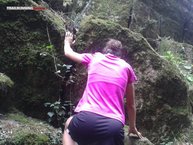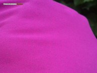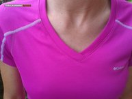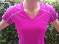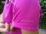 Nuestra primera sensación al verla es de ¡que bien, parece técnica y no por ello deja de ser femenina! Y es que se trata de una camiseta con un corte muy femenino, y un colorido rosa fucsia, que nos llama realmente la atención. De manga corta, entallada, y con cuello de pico. Nada más en apariencia. Sencilla y sin diseños raros. Unicolor y con las costuras de un lila grisáceo. Pero...¿tan sencilla no puede ser, no? Y es cuando miramos con más atención que descubrimos un tejido formado por múltiples redondas pequeñitas que cubren todo el tejido como si fuera un tapiz, más visibles en la interior de la camiseta que en el exterior. Así que después de echarle un primer vistazo, nos han entrado ganas de descubrir que tal es esta camiseta Columbia Zero Rules W en el campo de batalla...¡vamos a ello!