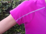 Cuando nos la ponemos por primera vez nos sorprende su suavidad y gran ligereza. Con un cuello de pico ajustado pero generoso y unas mangas más bien cortas y ajustadas, pero nada molestas, podemos decir que es una camiseta comodísima. Como de costumbre, y reconocemos que es una peculiaridad, cerramos los ojos y intentamos pensar si notamos los límites de la camiseta: las costuras del cuello, las mangas, el largo de la camiseta, si notamos alguna molestia al movernos...y es curiosísima la sensación de no llevar nada. Entrando un poco más en materia, descubrimos que Columbia tiene la culpa de esta sensación, porque ha utilizado en la construcción de la camiseta dos tipos de costuras: las de toda la vida, en el tronco y la parte inferior de la camiseta; y un tipo de costuras que ellos denominan flatlock en las zonas más sensibles y con mayor riesgo de rozaduras. Así que...¡más ganas todavía de empezar a correr!