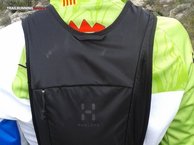 Algo que también queremos destacar de forma muy positiva en nuestro test de esta mochila de hidratación Haglöfs Gram Hydra True Black es su comportamiento en salidas muy largas. Después de varias horas el sistema de fijación permanece intacto, ni un centímetro de holgura más que cuando nos la hemos puesto; y lo más importante es que no nos provoca rozaduras en la zona de los hombros, en parte porque estas tiras son bastante estrechas, porque vienen protegidas con un revestimiento en los laterales, y sobretodo porque no se mueven ni un centímetro.