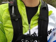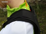 Al ponernos la mochila por primera vez nos sorprende gratamente. Es muy ligera (tan sólo 400 gramos) y las correas de los hombros, aunque sean más bien estrechas, quedan muy bien apoyadas, de forma que nos resultan muy cómodas. Además podemos ajustarlas a nuestra medida, de modo que la mochila queda perfectamente ajustada. Por último, el ajuste de la cinta pectoral (cuya altura se puede regular) permite fijar definitivamente la mochila a nuestro cuerpo. Ya antes de empezar a correr, el ajuste es perfecto, así que nos entran ganas de salir a la montaña y disfrutar.