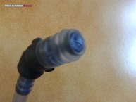 La manguera o tubo es suficientemente largo para que lo regularlo a nuestra necesidad (el sobrante se puede esconder). Es de muy fácil acceso, desde ambas manos y el extremo tiene una válvula o seguro para evitar pérdidas de líquido o goteo. En nuestro caso, nos ha parecido cómodo esconder el tubo hacia atrás (como si lo volvieramos a su punto de origen en la bolsa Hydrapack, aunque tiene una pequeña cinta en la correa a l'altura del hombro para fijarla y que no se nos mueva.