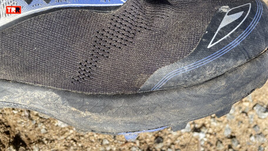 El upper también ha respondido de forma convincente. Las protecciones de TPU, aunque no son nada gruesas ni rígidas, siguen bien adheridas al conjunto, señal de que el sistema de termosellado está bien ensamblado. Otro aspecto a destacar es el buen estado de las zonas de flexión, puesto que casi no se aprecian marcas en los puntos críticos, ni mucho menos desgaste en el tejido del upper.