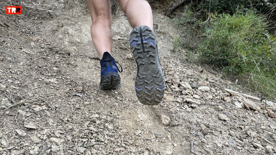 Durante las salidas realizadas, el comportamiento general de la suela ha sido convincente en la mayoría de superficies habituales del trail. En pistas forestales y senderos de tierra compacta, e incluso con terreno algo suelto, el agarre ha sido bueno y la tracción más que suficiente para correr con total confianza. También en tramos con piedras o secciones algo más rotas las TR-7 han permitido avanzar sin demasiadas preocupaciones, siempre que el ritmo se mantuviera dentro de lo razonable y la pisada fuera controlada.