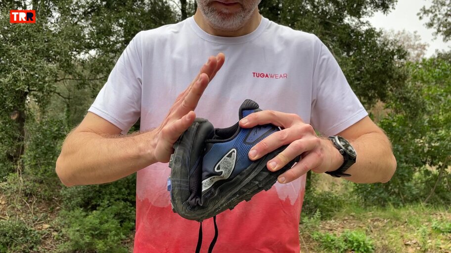 El segundo aspecto está relacionado con la sujeción del pie. La horma amplia y el generoso acolchado del talón aportan comodidad, pero no siempre proporcionan la precisión necesaria cuando el terreno exige movimientos rápidos o cambios bruscos de dirección. En zonas con muchas piedras, apoyos laterales o laderas inclinadas hemos notado cierto desplazamiento del pie dentro de la zapatilla, lo que restaba seguridad. En esos casos, si intentábamos correr con cierta agresividad, hemos tenido una sensación como de perder pie, llevándonos como resultado alguna que otra leve torcedura de tobillo.