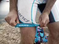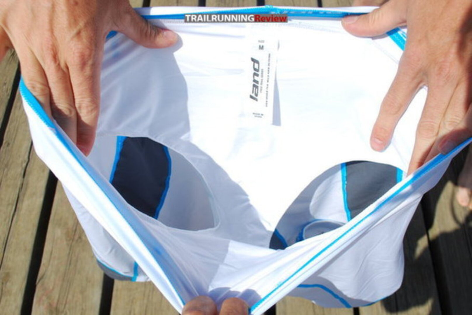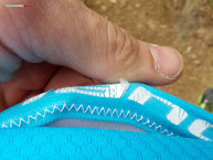 Cambiando de tercio, vamos a ver algunas de las ideas innovadoras que presentan las mallas Land Explosive 7 IN. En primer lugar el sistema de ajuste, tanto en cintura como en la pierna: la silicona. Se trata de un sistema que se usa desde hace mucho en la ropa de ciclismo y que favorece la sujeción e inmovilidad de la prenda durante el uso. La idea, brillante, la ejecución deja bastante que desear como os vamos a detallar. Resulta que la silicona la han colocado sobre un estampado periódico de la marca Land, a lo largo del interior de la cintura y las perneras. Por un lado, no le vemos sentido a que estampen la marca por la parte interna, la publicidad es para los de tu alrededor, no para los que las llevan puestas. En segundo lugar, usar un estampado que se agrieta al estirarlo y ponerle encima la silicona provoca que la silicona dure lo que dura, un suspiro. Mal pensado. Seguro que con una pequeña vuelta de tuerca esto lo solucionan, y si lo hacen será un gran aporte ya que la comodidad y la sujeción de la prenda al cuerpo será bastante buena. Cabe decir que en carrera, la parte trasera de las mallas se va bajando, lo que hace que tengamos que estar constantemente pendientes de subirlo para no dejar la hucha al descubierto. Quizá es un error en la elección de la talla, pero los que sean canijos tendrán ese problema, recomendamos que opten por una talla menos a la habitual. De este modo, también podremos aprovechar el diseño que, sin ser compresivo, favorece la sujeción muscular.