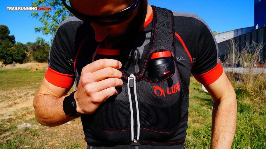 Este Lurbel Kylie Pro permitirá acarrear dos bidones blandos de 500ml, incluso semi rígidos (los típicos de Powerade también entran a la perfección). Con los bidones blandos de 500ml hemos podido beber sin necesidad de sacarlos del bolsillo, aunque nos quedan algo bajos. Si usamos bidones con una caña (corta) creemos que es incluso mejor, más fácil de beber en carrera. No es que sea un drama, pero con bidones blandos puede ser que cueste introducirlos en el bolsillo.