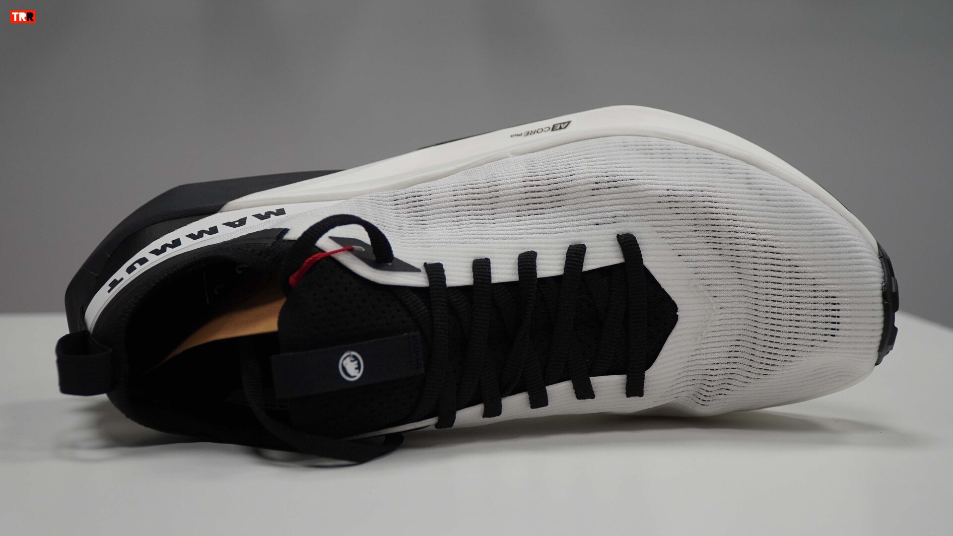 Para suavizar el contacto con esta lámina, Mammut añade una capa de EVA de unos 2–3 mm justo bajo la plantilla, ya que el footbed es muy fino, lo cual mejora las sensaciones bajo el pie sin comprometer peso o sensibilidad al terreno.