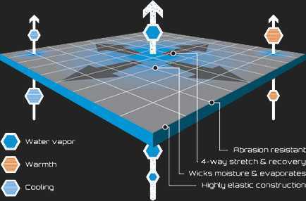 Es un tejido que gestiona la humedad, expulsando hacia el exterior nuestro sudor. Sus características principales son: