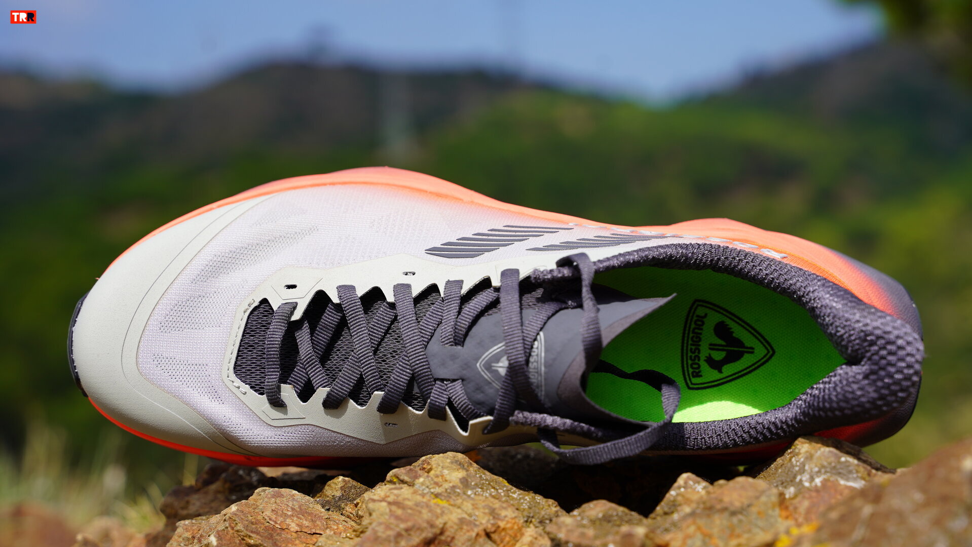 En el upper, Rossignol apuesta por la comodidad y la transpirabilidad: un mesh tipo jacquard que favorece la aireación y mantiene la estructura con refuerzos bien colocados. Acolchados generosos en la zona del talón —como ya vimos en sus hermanas— y una lengüeta muy fina que reduce peso y aporta confort sin sumar rigidez innecesaria.