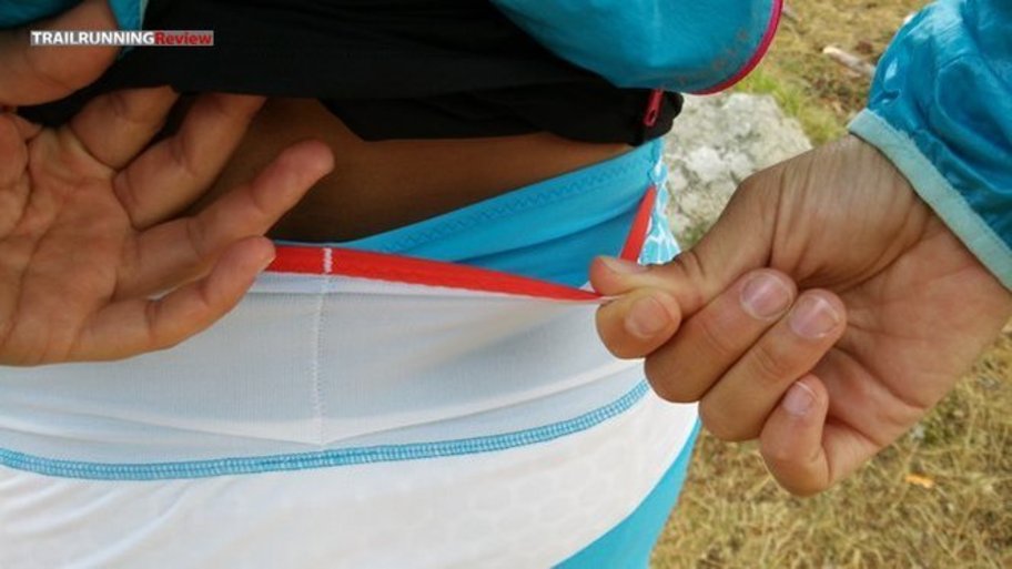 Los detalles de calidad no faltan en esta prenda de la colección S-LAB de Salomon. Un punto a destacar son los dos bolsillos que han incorporado en la zona lumbar de unos 10cm de largo cada uno, hechos de una tela microperforada que facilita la transpirabilidad de esta zona y deja una capacidad de carga bastante significativa. Es capaz de asumir la cantidad de dos o tres geles y barritas, un dispositivo móvil y unas tiras nos ayudan a acceder a ellos con mucha facilidad. Por el peso de la carga no tenemos que preocuparnos lo más mínimo, pues la zona elástica de la cintura se encarga de fijarla a la perfección. Desearíamos tener algún compartimiento en la zona frontal también para poder repartir mejor el peso o sistematizar los alimentos en función de la necesidad en carrera. Al llevar mochila necesitamos librar estos bolsillos traseros, y en este caso sería útil tener otro acceso rápido delante.