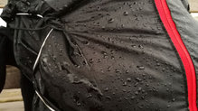 El material que se ha utilizado para la construcción de la parte trasera de la mochila no es impermeable pero sí repele el agua. Esto es de gran ayuda para las pequeñas lluvias intermitentes que se pueden dar en alta montaña pero obliga a llevarlo todo en bolsas estancas en caso de lluvia intensa.