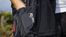 Los bolsillos exteriores situados en los laterales de la parte inferior de la Salomon SLAB Peak 20 son ideales para llevar bidones de hasta 750ml. Se ajustan perfectamente allí y no hemos perdido ninguno en todas las salidas realizadas. Cuando la parte inferior de la mochilla está suficientemente cargada, las botellas se adaptan a ella sin ningún problema.