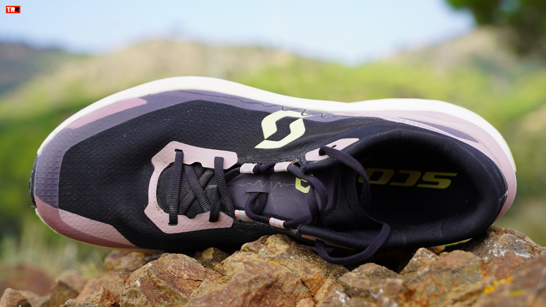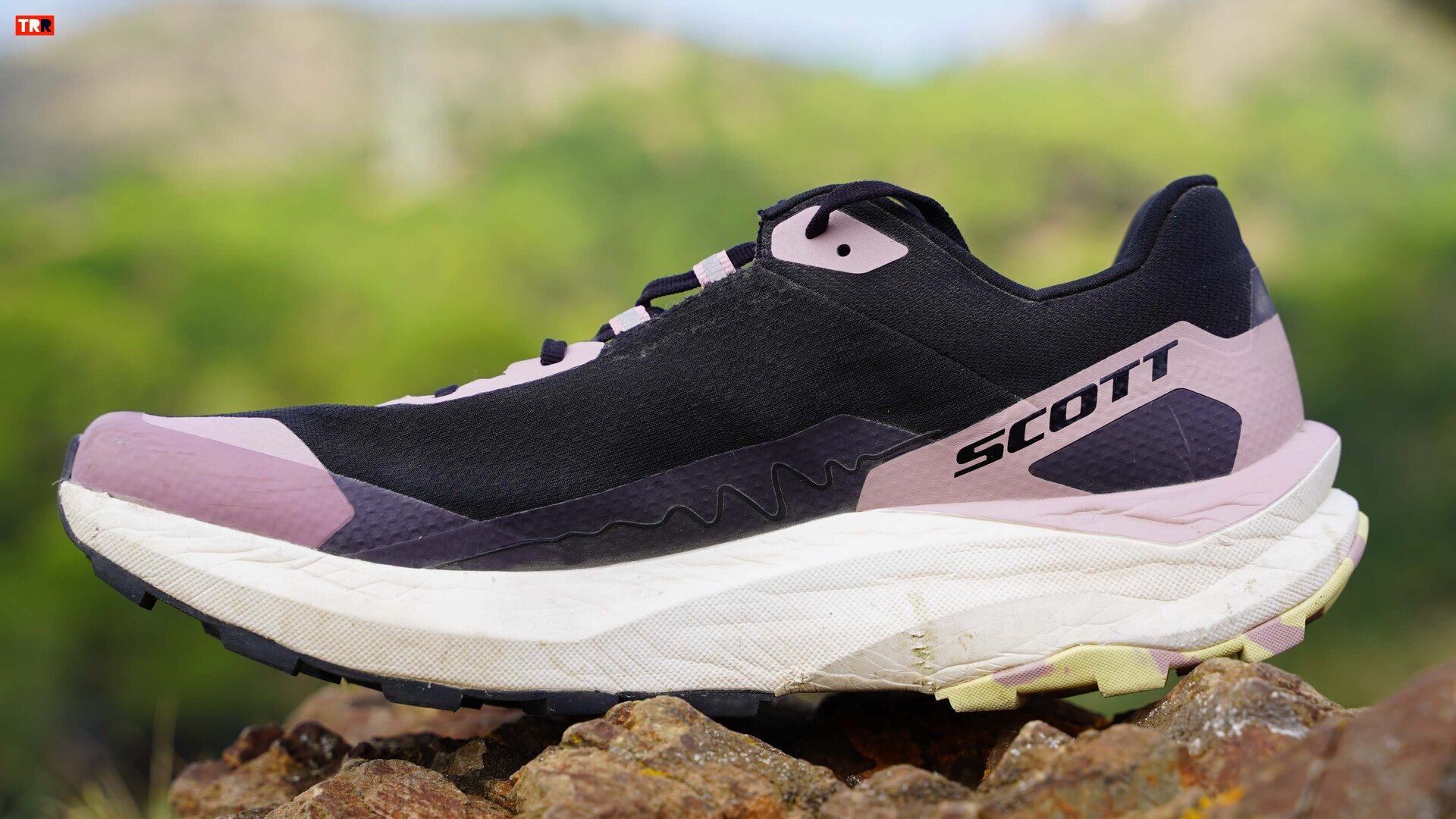 La mediasuela combina EVA con Pebax en esta versión Trail para aportar un punto más de reactividad respecto a sus hermanas (como la Ultra). El tacto se siente amable y bastante blando, con buen aislamiento del terreno y con cierta respuesta en carrera. Sin duda, se nota un paso adelante respecto a lo que Scott ofrecía anteriormente en este segmento.