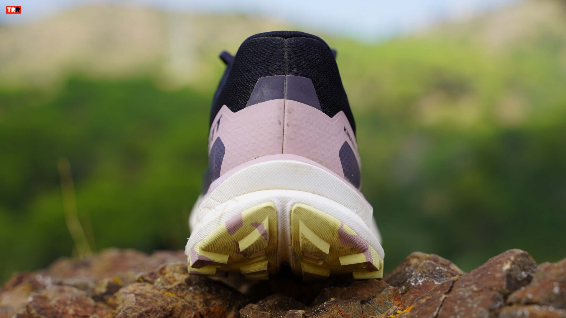 El upper ofrece estructura y comodidad a partes iguales, con protecciones plásticas bien colocadas y acolchado generoso en el collar. No es una zapatilla con chasis rígido, pero ofrece un buen equilibrio entre sujeción y confort.