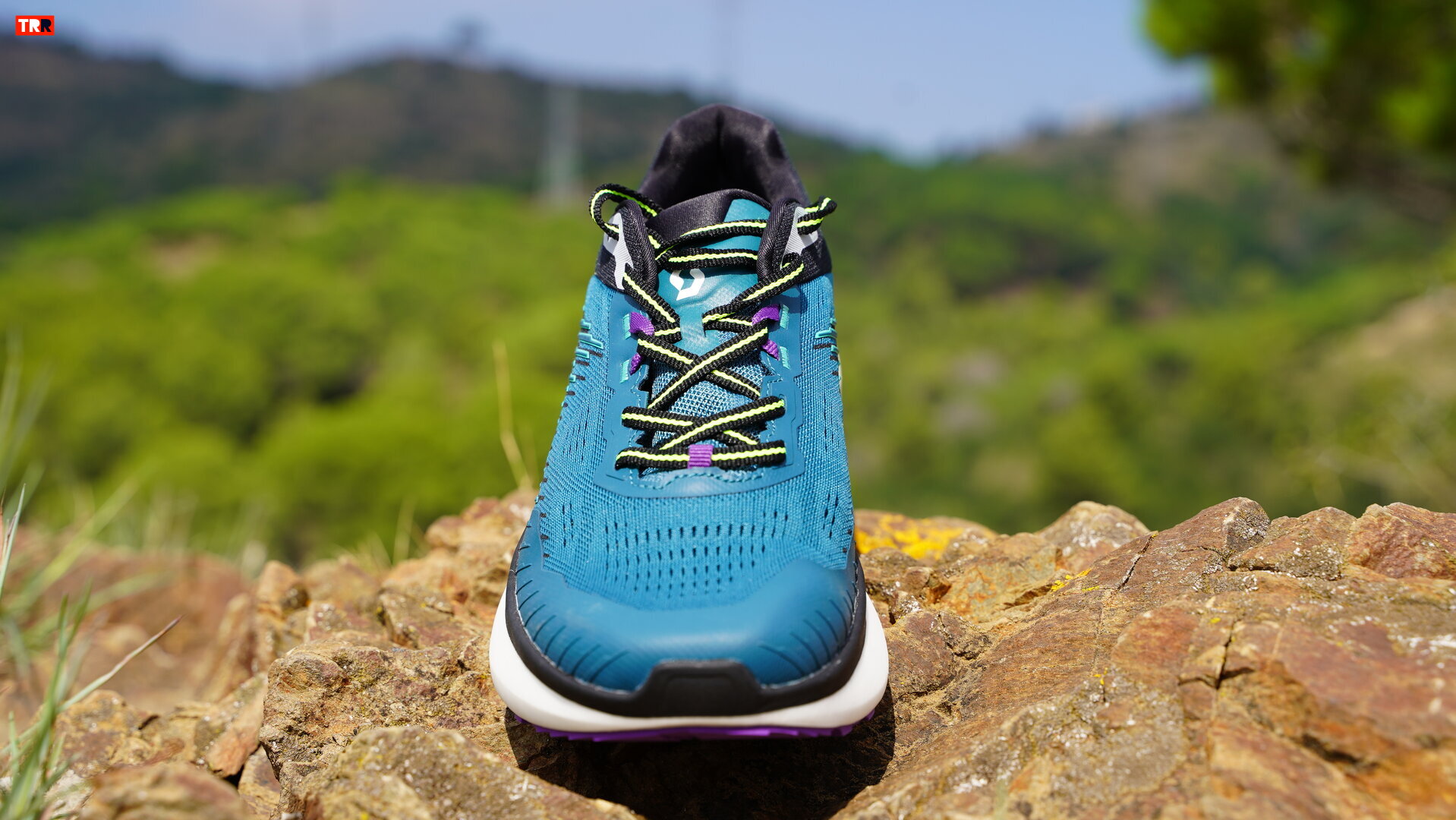 La media suela, uno de sus grandes argumentos, incorpora un compuesto con nitrógeno inyectado, algo que cada vez vemos más en zapatillas de entrenamiento o competición. Esta espuma aporta un tacto firme pero cómodo, con buena protección frente al terreno y una pizca de reactividad. Su estructura algo rígida se traduce en mayor estabilidad y dinamismo, y el marcado rocker delantero ayuda a facilitar la transición en cada zancada, especialmente en ritmos sostenidos o más rápidos, muy al estilo asfaltero.
