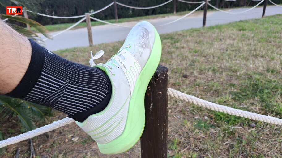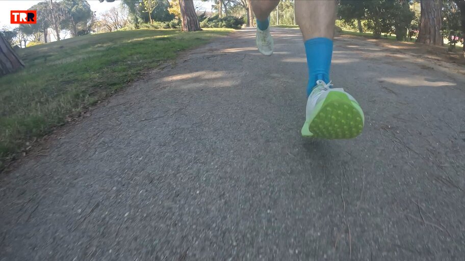 Una de las cualidades que más nos ha gustado ha sido el nivel de amortiguación, que se sitúa en esa frontera justa, perfecta y equilibrada entre lo blando y lo duro. Y esa sensación perdura a lo largo de la salida, ya que recobra su intensidad instantáneamente después de cada pisada. Eso sí, si entramos muy fuerte de talón -y al menos con los 82 kg del probador-, notamos como llegamos al “final” de esa amortiguación, tal y como ocurría en la VJ Lightspeed.