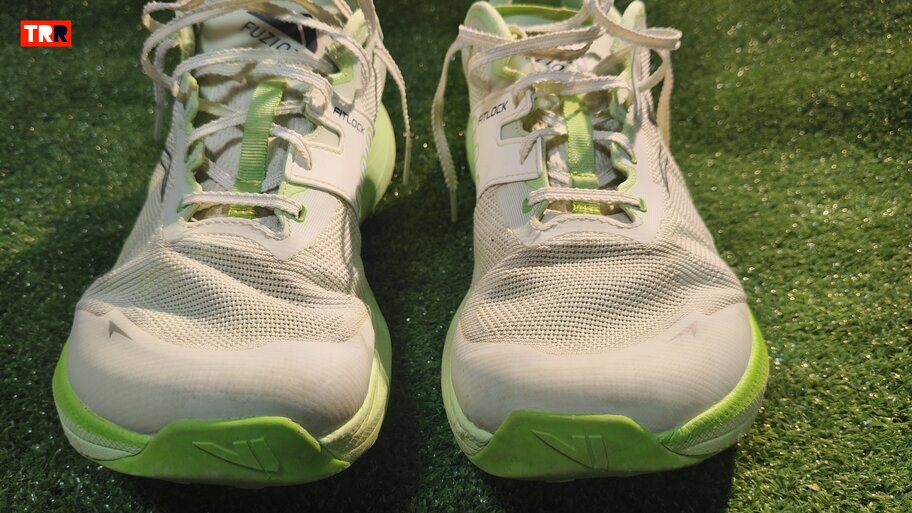 Pocas protecciones vas encontrar en las Fuzion Aerofly, y es que tampoco es que se necesiten demasiado... Entre ellos los 39mm/31mm de perfiles, que nos mantienen algo alejados del terrenos, el Fitlock ya comentado, la puntera que protege el dedo gordo y, finalmente, la placa integrada que confiere algo de dinamismo, nos protege las piedras puntiagudas del camino y evita la torsión lateral (es decir, dirige la pisada hacia adelante).