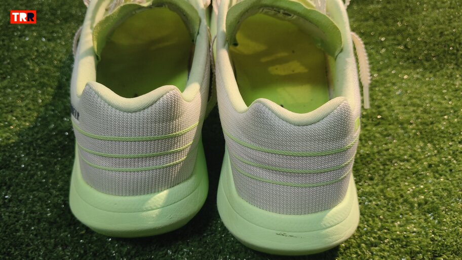 En la media suela, señas de compactamiento producto de su uso, pero sin roces o roturas, y especialmente, sin indicios de rotura en la zona de flexión lateral (típico de esta zona en un gran número de zapatillas). Tampoco vemos deshilachados, y los cordones, como el primer día.