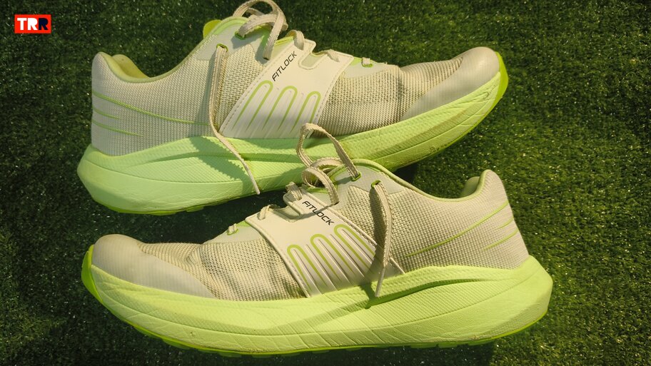 Sujeción de nivel para unas zapatillas que sacaremos, en principio, por terrenos sin complicaciones ni demasiadas irregularidades, ya que en tramos o zonas técnicas hemos podido comprobar que el pie “baila” algo dentro de la zapatilla, haciendo perder puntos en su estabilidad (pero nuevamente, nada alarmante, si recordamos para qué estan diseñadas). Los cordones planos y dentados se ajustan a la perfección al empeine, evitando que el nudo se abra o deslice con el paso de los kilómetros (eso sí, siempre mejor con doble nudo). Y si salimos de zonas llanas, aparece en juego el Fitlock, esa banda bien visible en la parte media del pie que nace en la media suela y llega hasta los ojales, cuya función es la de dar estructura y sujeción al pie, evitando que éste sobresalga -(o caiga)-, demasiado por esa zona.