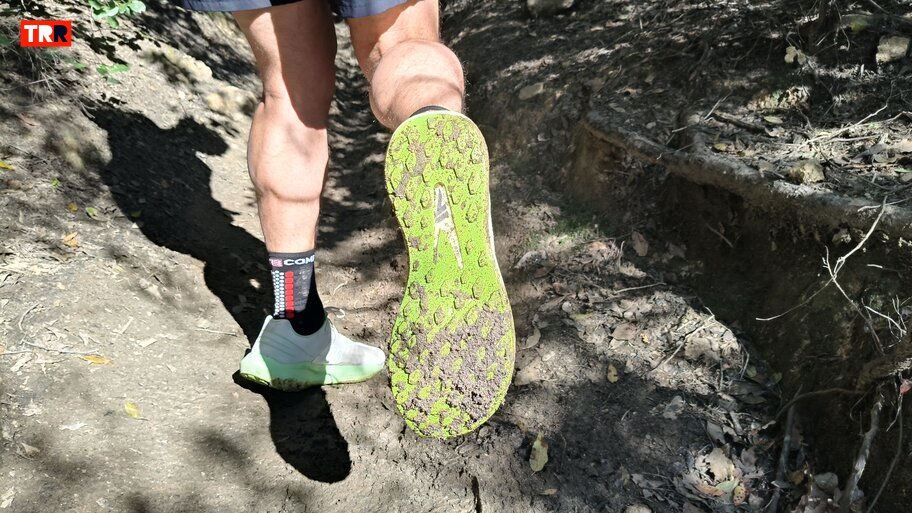 Dada la configuración del taqueado (abundante y no muy prominente), la tracción estará garantizada en terrenos secos y fáciles, incluida rocas o piedras, donde la adherencia nos recuerda que estamos ante un compuesto top del mercado (aunque quizá en este modelo no se nota tanto como en otros). No obstante, mejor rehuir del barro o tramos muy técnicos, zonas para las que no están diseñadas.