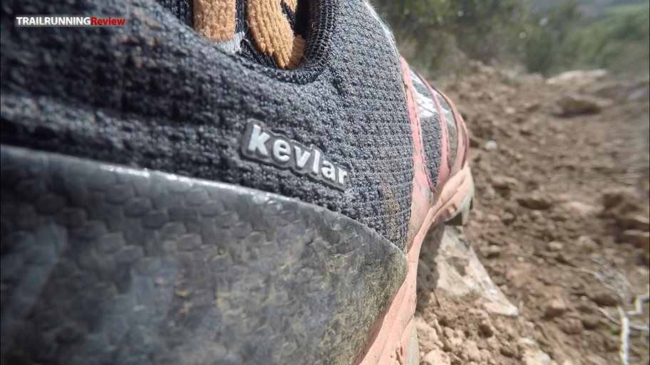 Y como comentábamos, las protecciones de las VJ Sport Irock 2, también es uno de sus fuertes aun tratándose de unas zapatillas bastante ligeras. Podríamos decir que están protegidas en los 360º. ¿Y por qué en los 360º? Pues porqué encontramos protecciones bastante rígidas en la puntera, en el talón, en la zona del arco del pie (Fitlock), es una lengüeta plástica bastante rígida y la tela de kevlar que tienen ¿protegidas verdad? Nosotros la verdad es que no hemos sufrido daño alguno en nuestros pies mientras las probábamos, y eso que objetos como piedras, rocas y raíces que nos iban golpeando mientras corríamos.