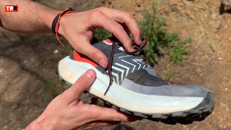 Para finalizar, nos gustaría comentar nuestra experiencia con distintos sistemas de atado ya que al inicio notábamos el talón muy inestable en las bajadas rotas y después de distintas pruebas, os recomendaríamos usar el ojal extra para fijar bien el calcáneo en la parte trasera y ganar en sensación de sujeción. Aun haciendo esto, debéis tener en cuenta que no es una zapatilla para terrenos técnicos y la sensación de inestabilidad perdura aun haciendo este atado, pero mejora sustancialmente. El otro inconveniente ya comentado en el apartado de PROS / CONTRAS es que al realizar este atado la lengüeta es muy minimalista como para proteger de la tensión de este último ojal.